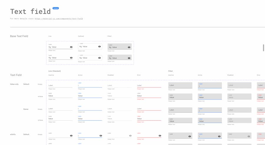 The Design Kits contain many of the Material UI components with states, variations, colors, typography, and icons.